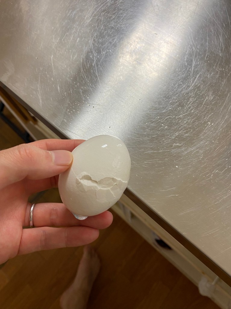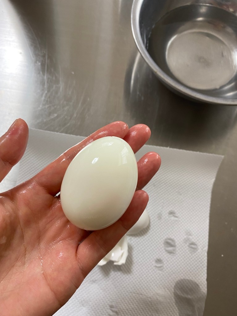 黄身が偏らないように、定期的に卵を混ぜて、混ぜて、混ぜます。