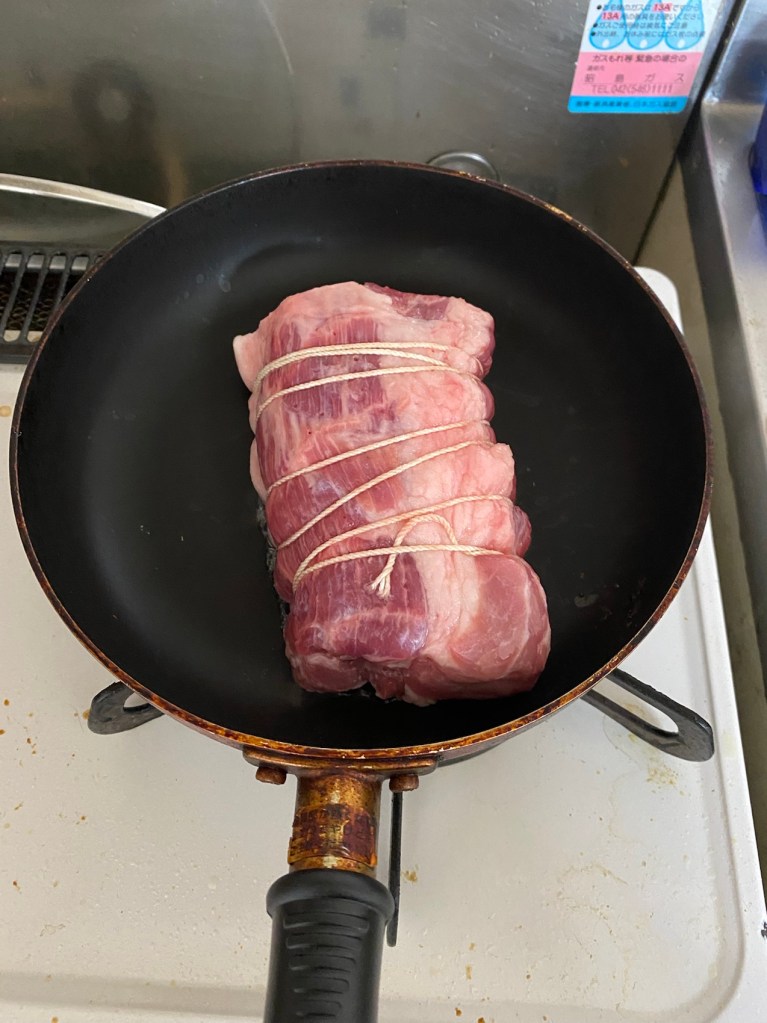 表面に焼き目がつくまで、焼いていきます。※中まで火を通す必要はありません。