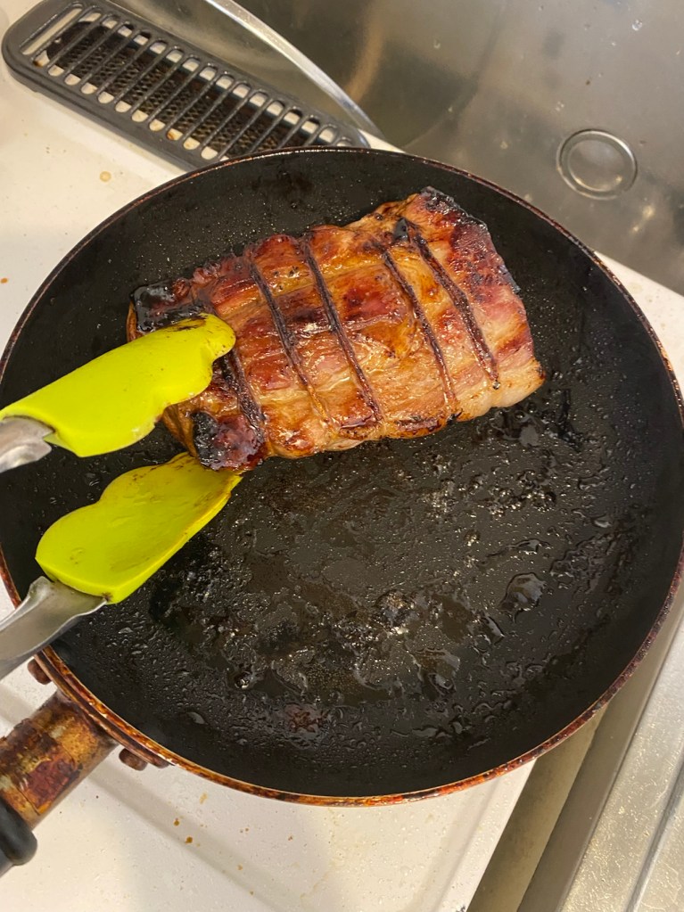 「ジュー」と食欲をそそる音が聞こえてきました。ひっくり返すと…