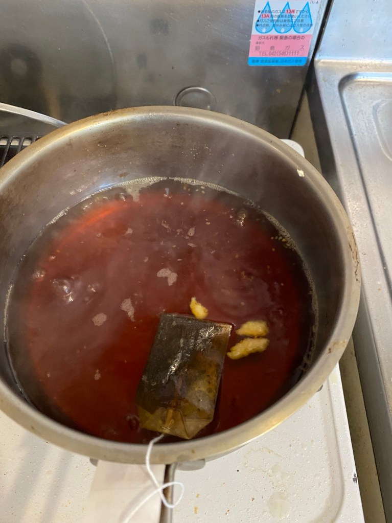 沸騰後、火はトロ火にし、60度くらいを維持します。
